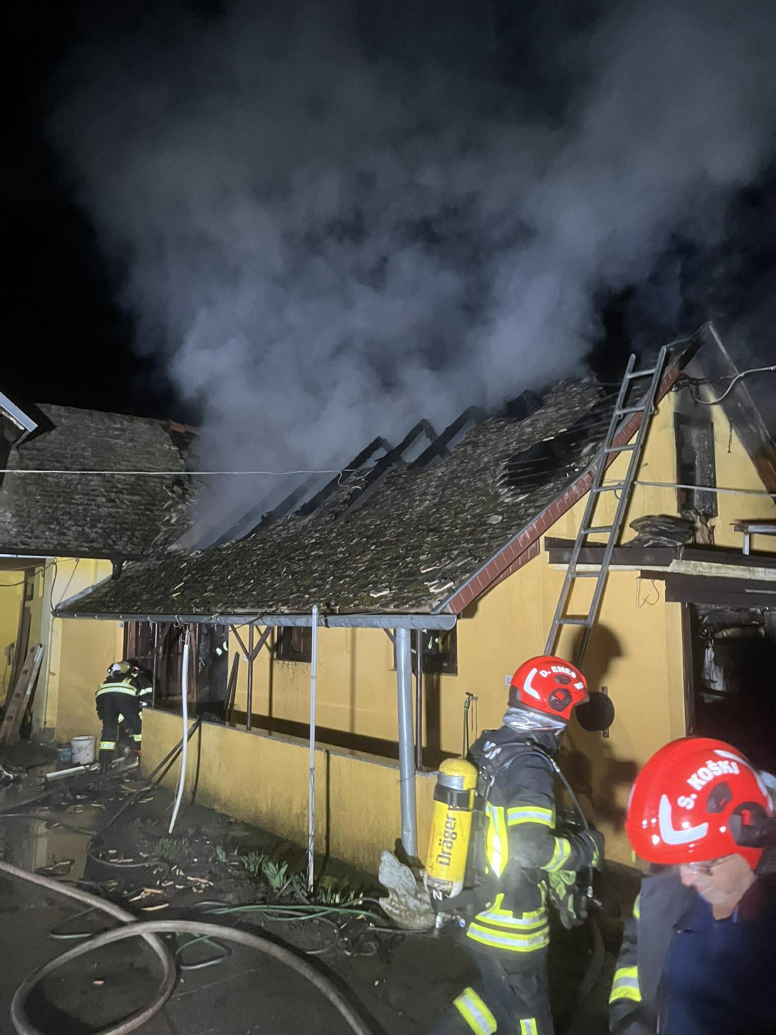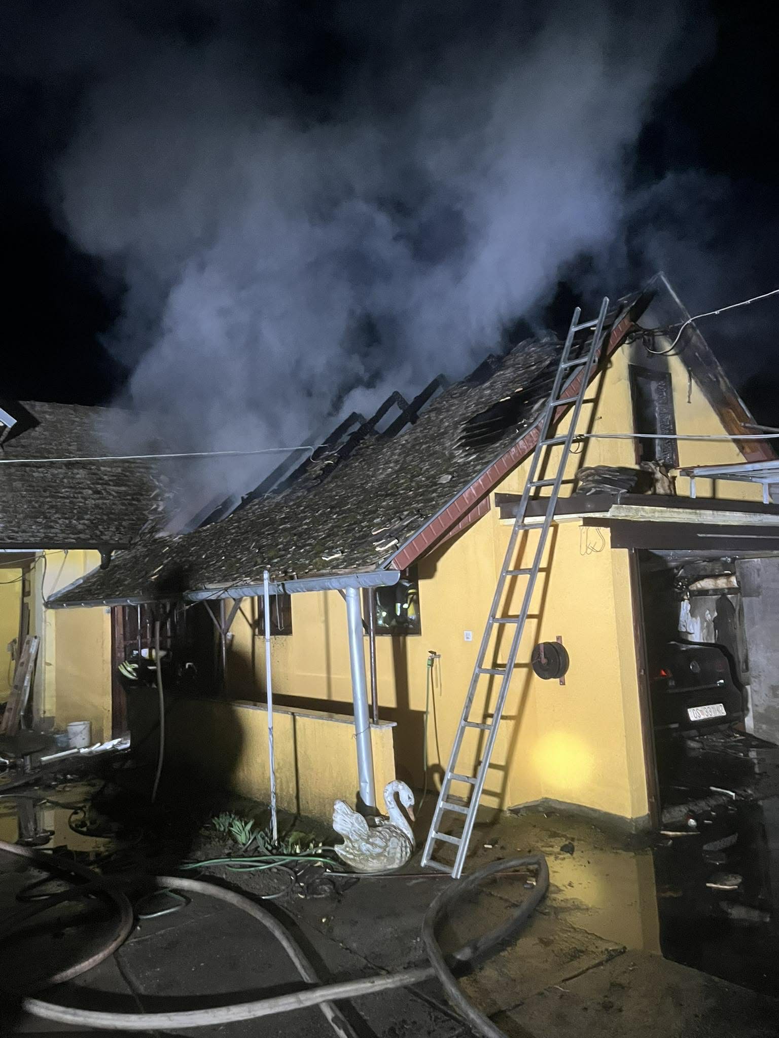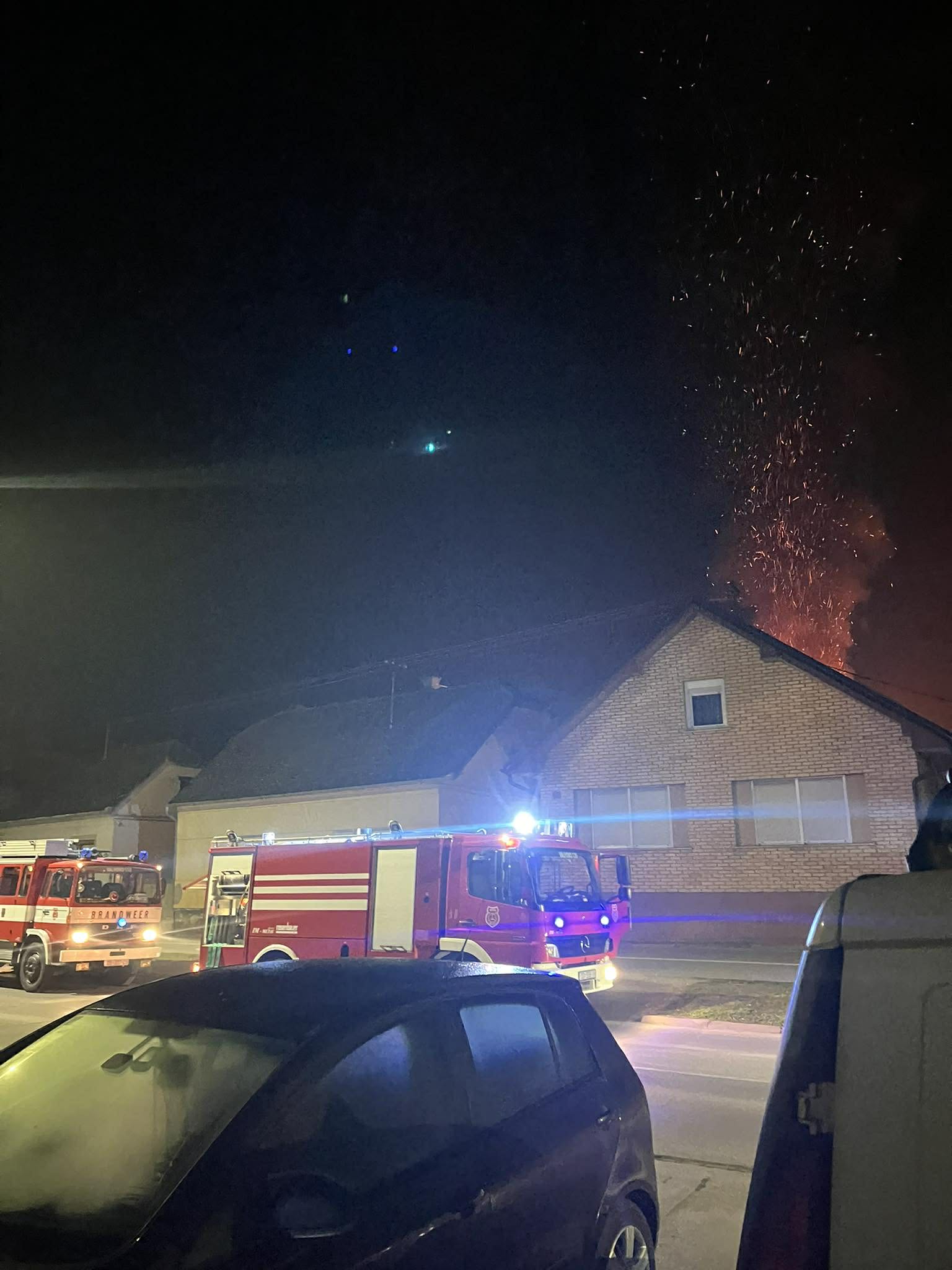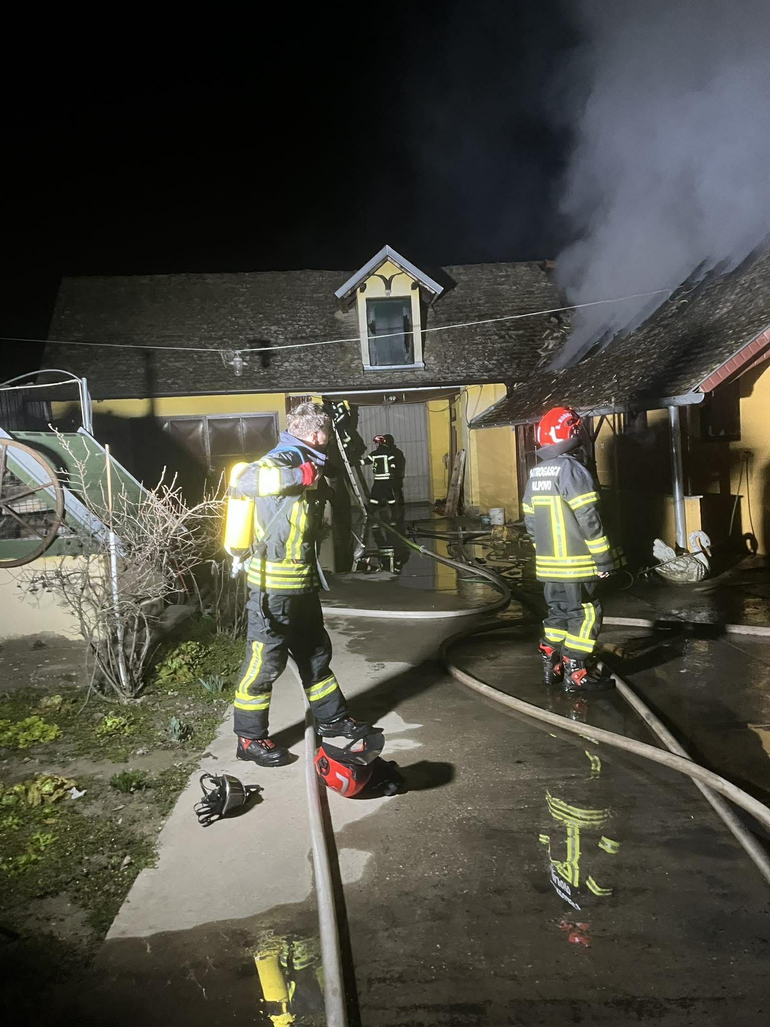 Dolaskom na mjesto intervencije zatekli smo požar u razbuktaloj fazi koji je zahvatio kompletnu garazu, te se počeo širiti na štagalj. Gašenje vršimo sa tri C mlaza i spriječavamo daljnje širenje požara. S jednim mlazom pjene vršimo gašenje automobila koji se nalazio u garaži. Nakon lokalizacije požara, raskopavamo požarište te obavljamo dogašivanje istog. Intervenciju završavamo u 05.31 h.